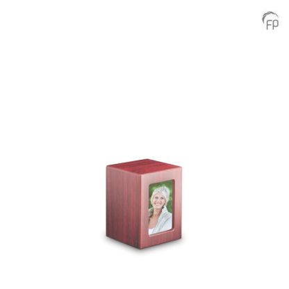 De vormgeving van deze houten urn kenmerkt zich door de eenvoud en de moderne stijl in combinatie met opmerkelijke details. De houten urnen worden met de hand gemaakt. U maakt deze urnen persoonlijk en uniek door het plaatsen van de foto van uw dierbare. De Urn is eenvoudig van de onderzijde te vullen.